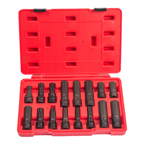 16 parça kilitleme bijon ana anahtar seti tekerlek kilidi temizleme kiti Spline yıldız ve altıgen tarzı tuşları